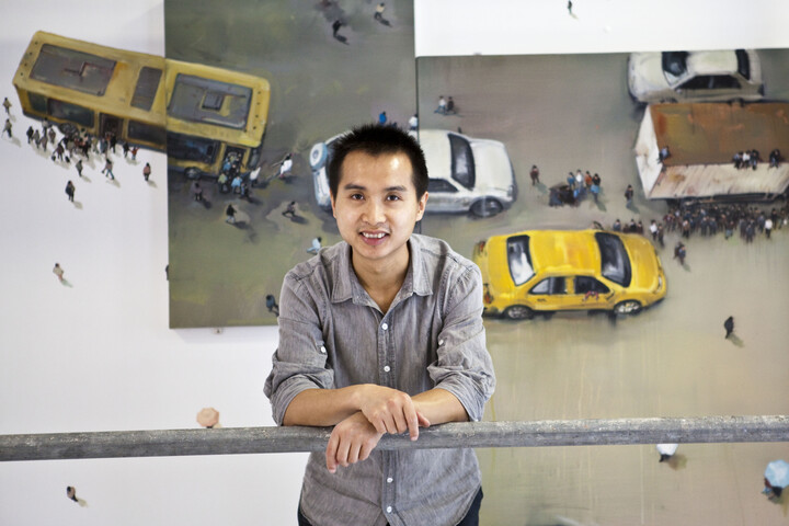 Zhou Jinhua zählt zu den bedeutendsten Vertretern der modernen chinesischen Kunstszene. In seinen von der traditionellen Landschaftsmalerei inspirierten Arbeiten thematisiert er den rasanten Wandel zwischen urbanen und ländlichen Lebensräumen in China. Die Werke „Respendence No. 2“ und „Amithaba (und Erweiterung)“ sind vor dem Hörsaal SO 108 im Mannheimer Schloss ausgestellt.