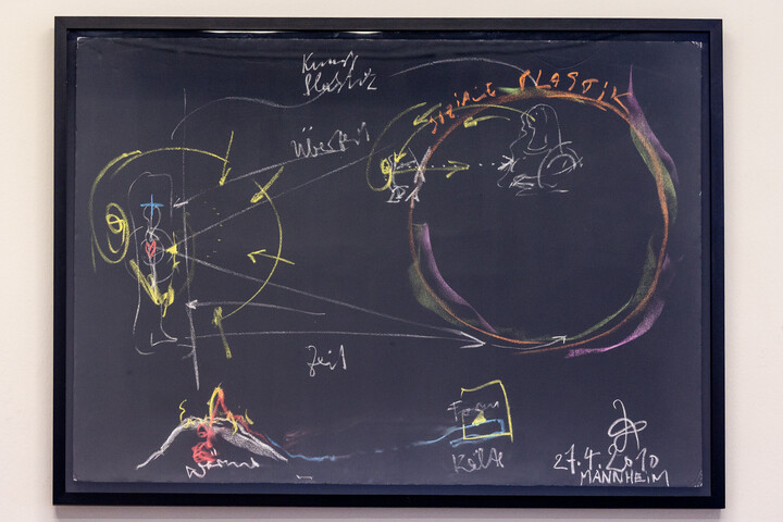 Die Aktionszeichnung „Die unsichtbare Plastik“ entstand während eines öffentlichen Vortrags des Künstlers Johannes Stüttgen im Rahmen des Bronnbacher Stipendiums (heute Kulturkreis Stipendium) an der Universität Mannheim. Die Arbeit verweist auf die gemeinsame Initiative von Künstler*innen, Stipendiat*innen und Alumni des ehemals Bronnbacher Stipendiums und ist als Dauerleihgabe im Dozentenzimmer der Universität Mannheim zu sehen.